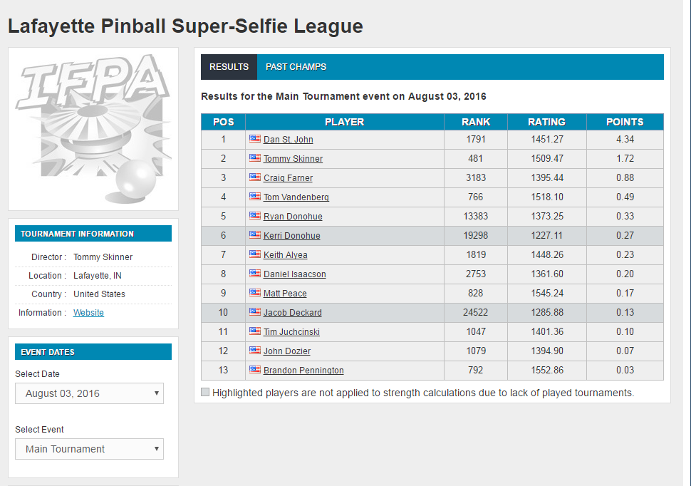 Hey Guys, the month of August was a bit of a whirlwind for me, but I finally got all of the results submitted to the IFPA last week and as of today they are now all approved and posted!