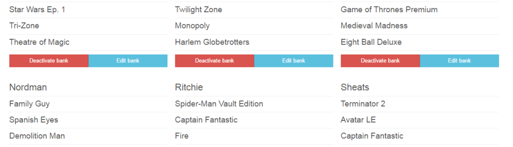 I posted these to the Facebook event page and Pinside yesterday but here you go! I made one slight change as I had forgot to include Space Shuttle, that has replaced Spanish Eyes being duplicated in two separate banks which I am sure is a relief to many of you!