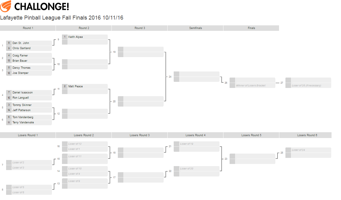 Hey guys, the Lafayette Pinball League Fall 2016 Season finished regular season play last night and we will officially be crowning our new champion next Tuesday 10/11/2016 at Main Street Amusements!