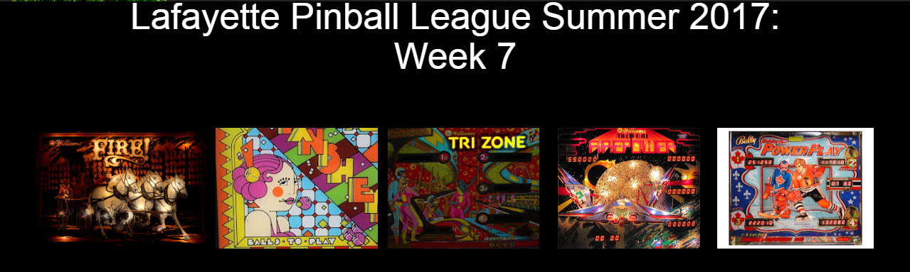 And here are the games for Week 7 CLASSICS NIGHT; Fire, Spanish Eyes, Tri-Zone, Firepower, and Power Play! See everyone next Tuesday at 7:30!