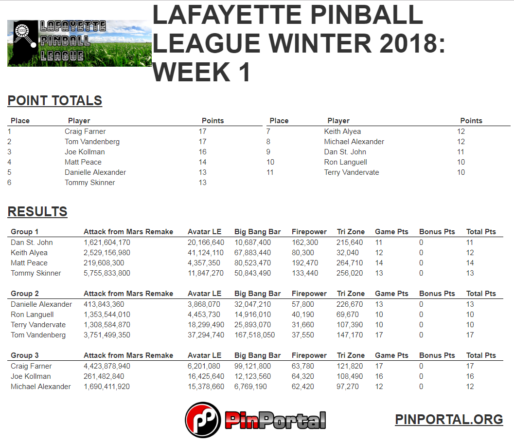 Next Tuesday, 1/16/2018, is our Monthly Tournament! Remember the start time has now moved up to 7:30 PM and it will remain there all year so it now matches our league start time. The format is also new, 1 hour of qualifying, playing against one person on a classic machine the whole time, new players and machines each round, as many as we can squeeze into the hour, and then 1 round of 3 games for finals against a group of 4. Each group will have prize money. As always our entry fee will remain $5. I hope you will all come out and give this new format a shot, I really think it should be fun and more inclusive than the 3-strikes format we have previously used.