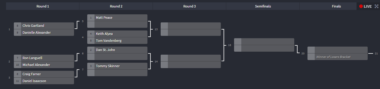 Or we could run the bracket split between A & B division, with seeds 1-5 in A, and seeds 6-11 in B. If we split the tournament it is worth more WPPR points, if we don’t split it anyone can win. Either way is fine with me, we can vote before we play tomorrow.