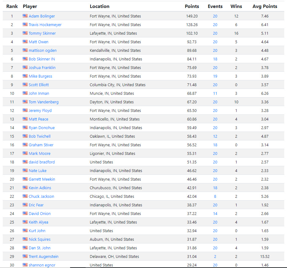 Here are the current Indiana NACS Standings. The top 24 get to play at state on January 19th, 2019. If anyone turns down their invitation from the top 24 then we move down the line.