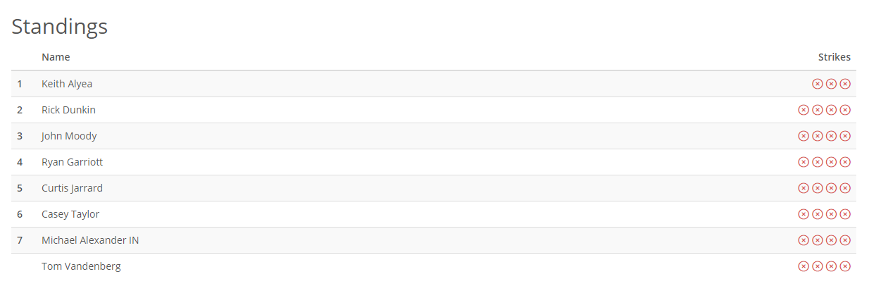 Rick Dunkin came in 2nd place last night, with John Moody coming all the way up from Terre Haute to finish in 3rd, and Ryan Garriot in his first tournament finishing with a strong 4th place finish. Everyone was pushed to the brink last night as it came down to Star Wars with Keith and Rick each having 3 strikes, and well…it’s Star Wars, sorry Rick.