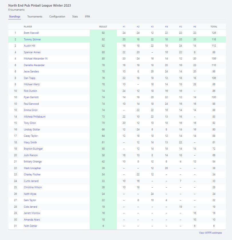 Hey everyone! Here are the standings after week 1! We have week 2 tonight at 8:30PM! SEE YOU ALL THERE! Remember you are always welcome to bring new friends to try out league! We welcome everyone! Awesome turnout for week one with 24 players, I know we have at least one more person joining this coming week putting us at 25! Thank you all for showing up and being a part of our pinball league, I love seeing so many people playing our games each week! If you can’t make it tonight and would like to be placed in a make up group please let me know, and also let me know what game you would like!